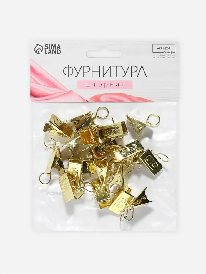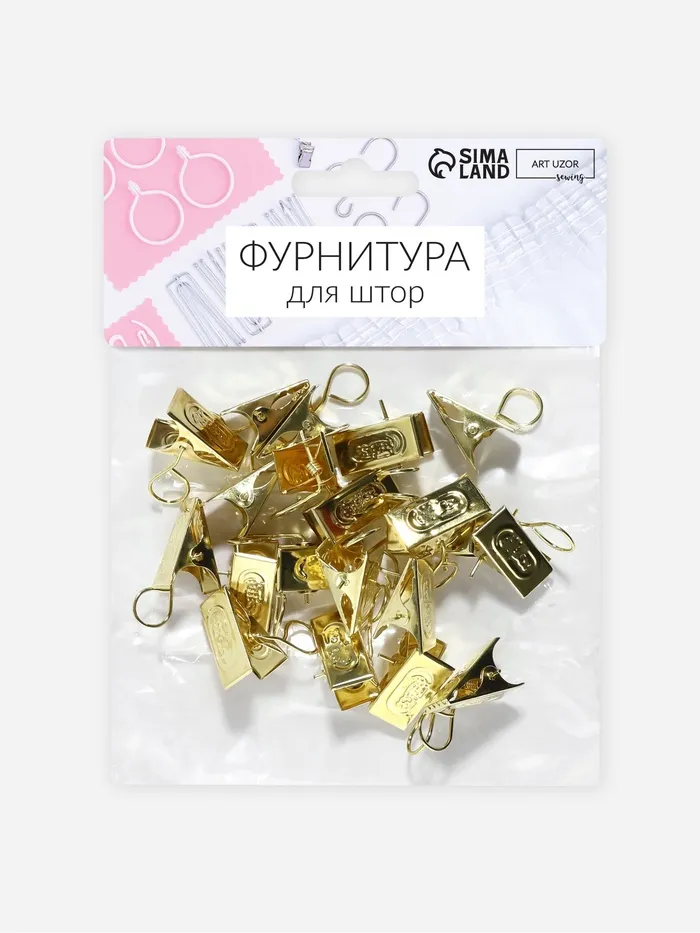 Зажим для штор, 32×11 мм, 20 шт., цвет золотой — Характеристики