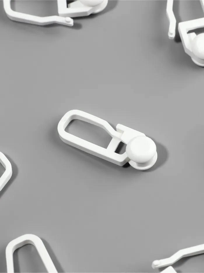 Аксессуар удобен тем, что при смене штор не нужно снимать кольца с карниза: достаточно отцепить зажимы.