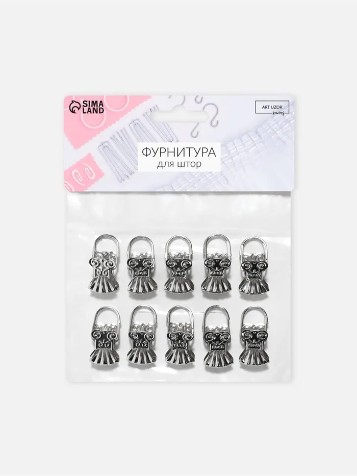 Зажим для штор «Ракушка», 30×15 мм, 10 шт., цвет серебряный — Характеристики