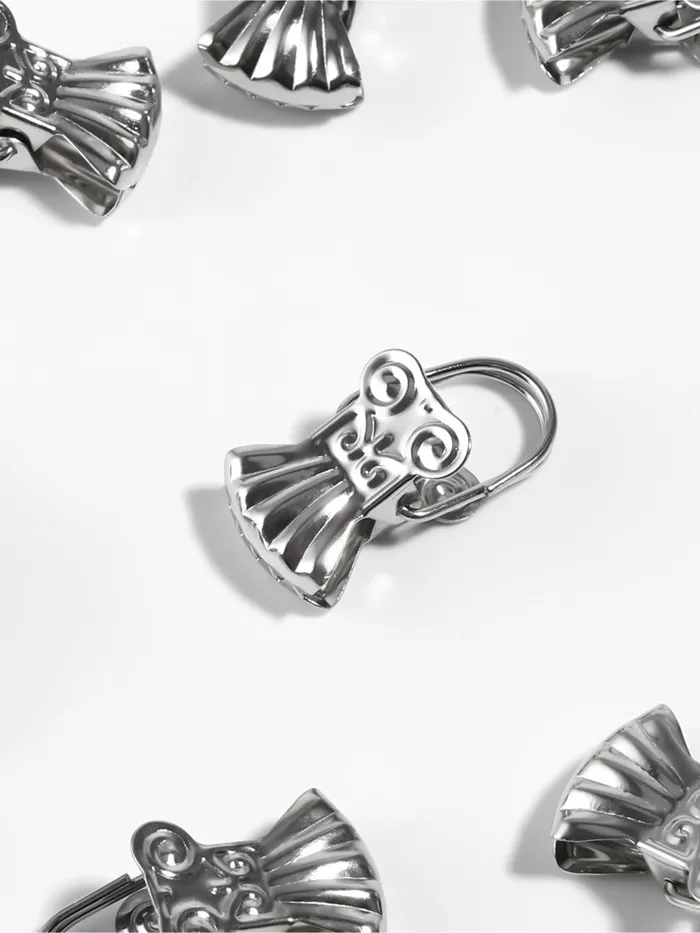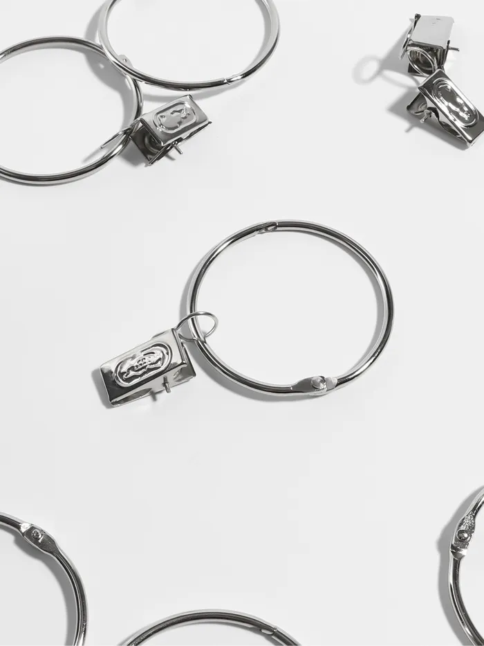Аксессуар удобен тем, что при смене штор не нужно снимать кольца с карниза: достаточно отцепить зажимы.