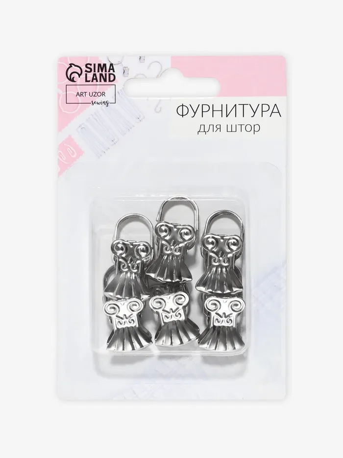 Зажим для штор «Ракушка», 32×16 мм, 6 шт., цвет серебряный — Характеристики