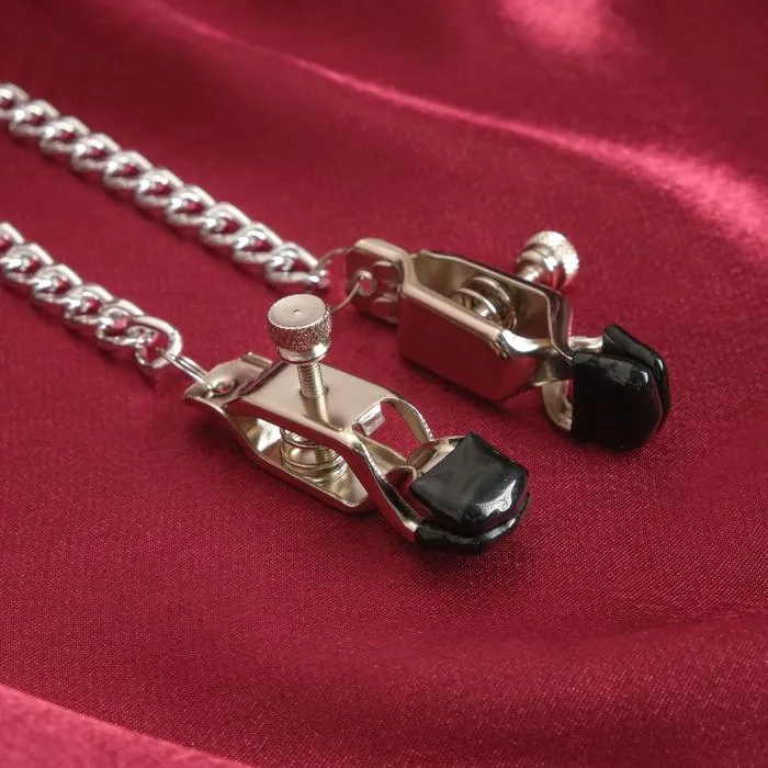 Соединяющая цепочка является не только красивым дополнением, но и позволяет оттягивать и вращать соски для получения дополнительных приятных ощущений. А регуляторы позволят контролировать силу зажима.
