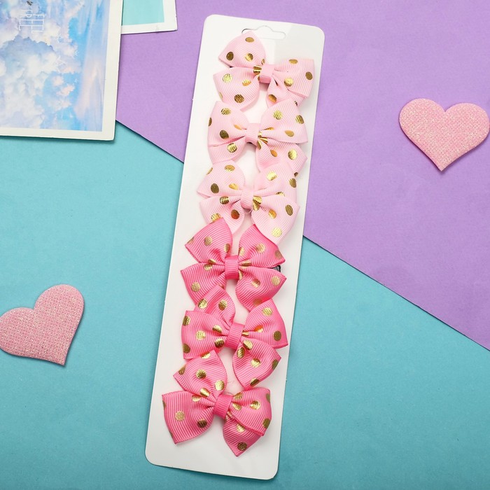 Невидимки для волос «Бантики», набор 8 шт., горох, чёрно-белые