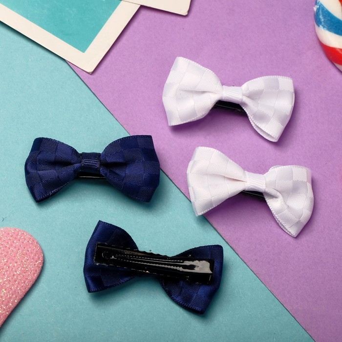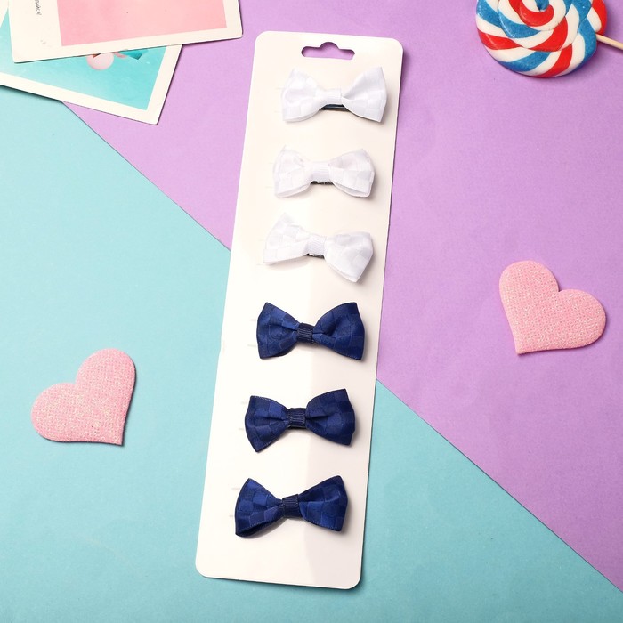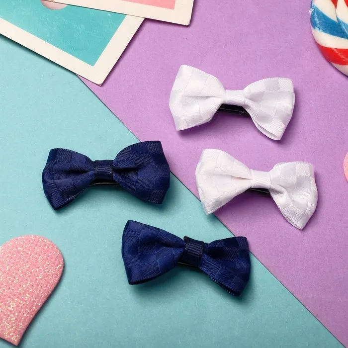 Этот стильный заколка-бант станет прекрасным дополнением к образу любой девочки. Идеальное сочетание текстиля и металла, подчеркнутое белыми и синими оттенками, добавляет изящества и утончённости.