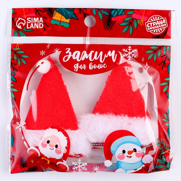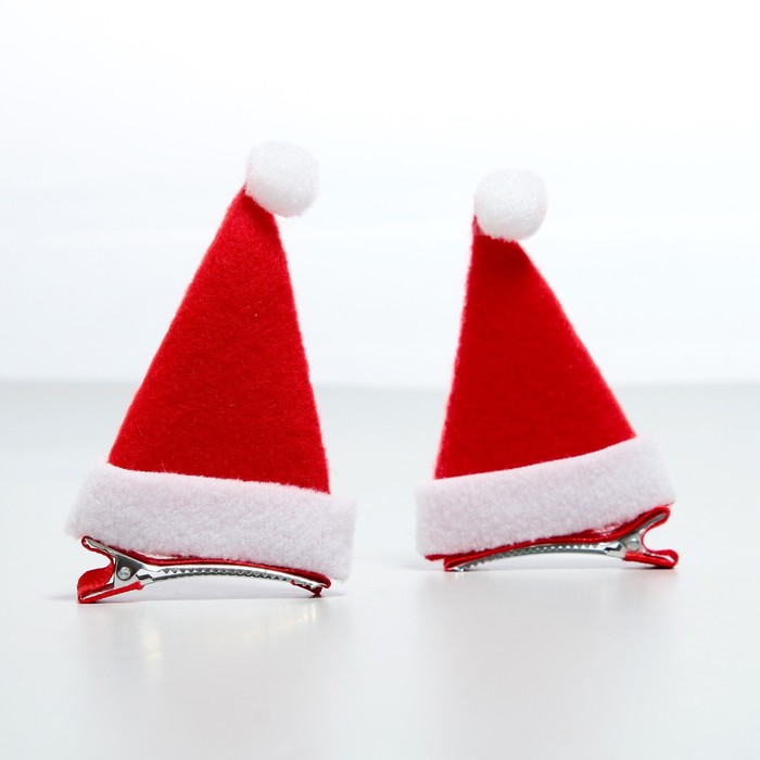 Зажим для волос карнавальный «Колпачок», набор 2 шт сделает образ по-настоящему новогодним! Эффектный аксессуар в виде самой популярной зимней шапки за считанные секунды добавит причёске стиля и поможет создать карнавальный облик. Такая яркая деталь станет отличным решением для любых снежных вечеринок.