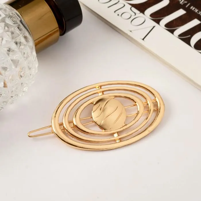 Этот зажим помогает создавать аккуратные пучки, хвостики или фиксировать пряди в сложных укладках. Его металлическая конструкция обеспечивает надежную фиксацию, а золотистый цвет добавляет образу праздничности. Такой аксессуар легко впишется в любой гардероб и станет незаменимым помощником в создании стильных причесок.