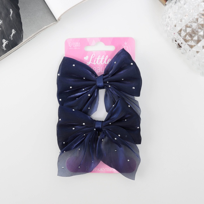 Зажим для волос «Марта», набор 2 шт., нежность блеск, 7.5 см, синий