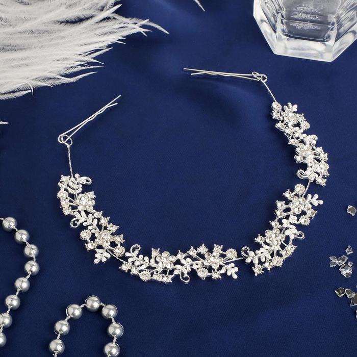 Аксессуар для волос «Анжелика», цветочки, 22 см, серебро