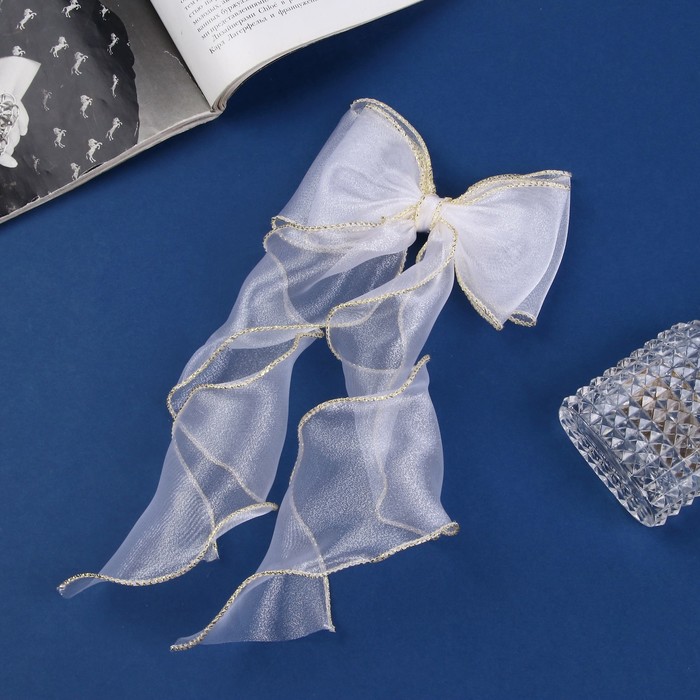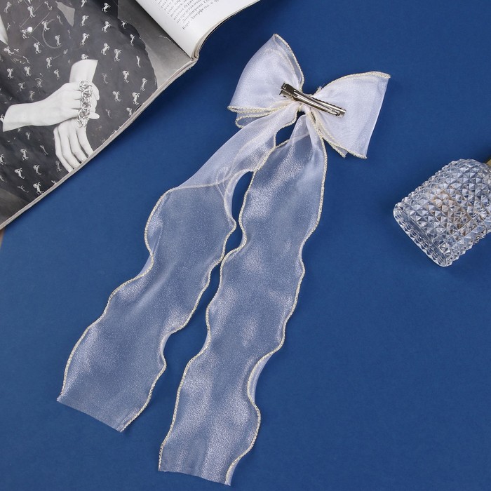 Зажим для волос "Школьница" бантик, 13х27 см, айвори с кантиком