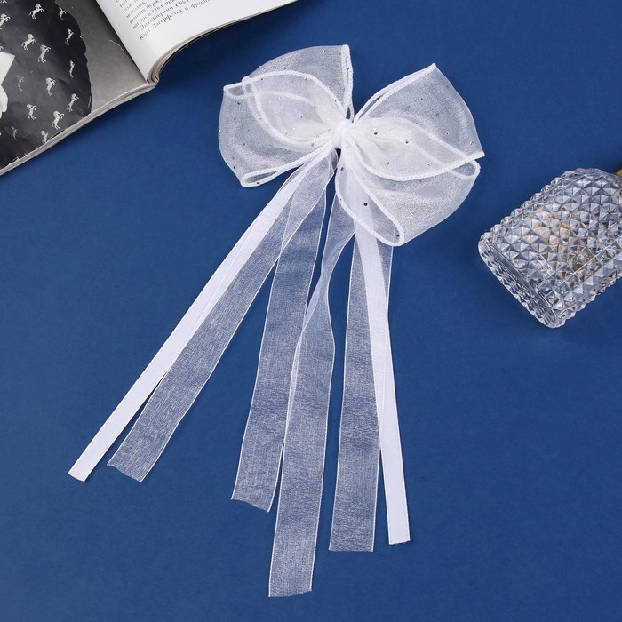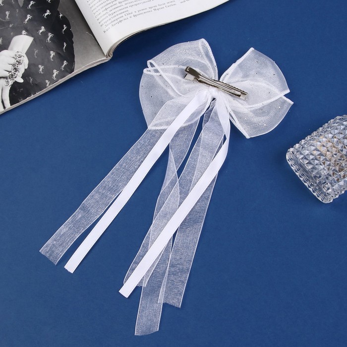Зажим для волос «Школьница», бантик, 15×25 см, белый стразик — Характеристики