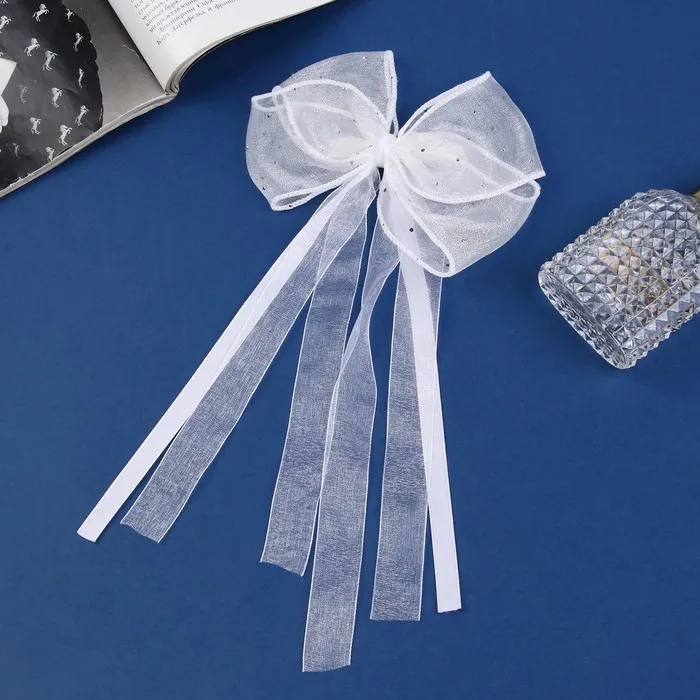 - Универсальный и стильный дизайн: белоснежный текстильный бантик с белыми стразами делает этот зажим идеальным дополнением к любому праздничному образу. Он добавляет нежности и изысканности, создавая атмосферу волшебства.