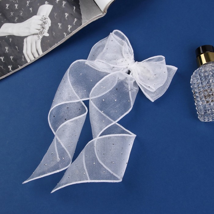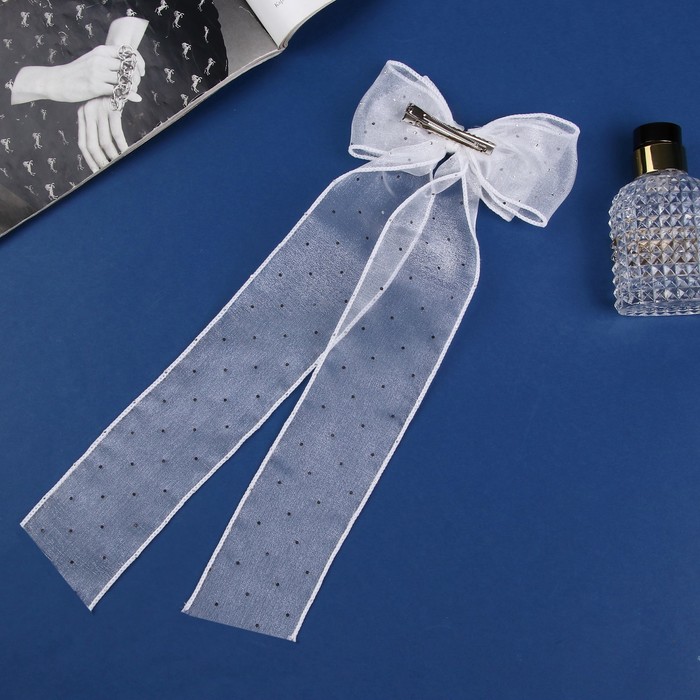 Зажим для волос «Школьница», бантик точка, 12×30 см, белый — Характеристики