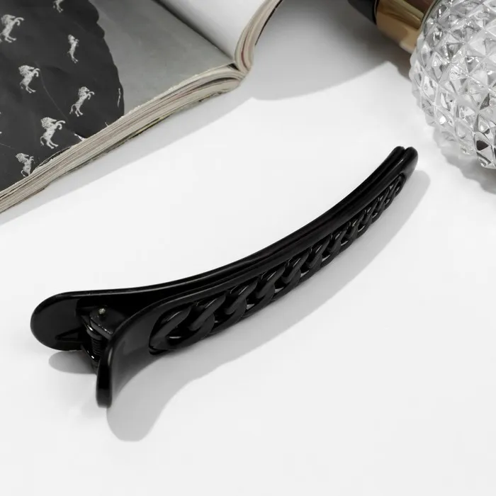 Изысканный зажим для волос «Вивьен» станет вашим верным спутником в создании стильного образа. Этот аксессуар, длиной 11 см, прекрасно подчёркивает элегантность и с лёгкостью вписывается в любой гардероб благодаря своему классическому чёрному оттенку. Изготовленный из прочного пластика, он подходит как для повседневных дел, так и для особых случаев, помогая выразить вашу индивидуальность и подчеркнуть стильные черты.
