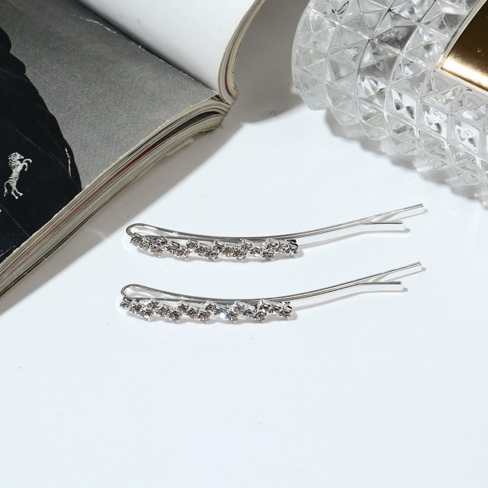 Зажимы для волос «Булавки», набор 2 шт., 5 см, серебро