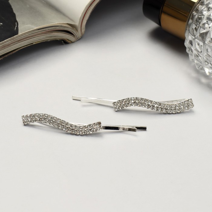 Невидимки для волос «Волшебный блеск», набор 2 шт., волна, 5.5 см, серебро