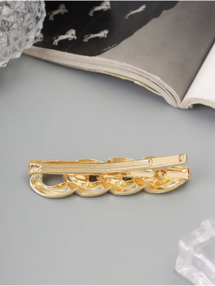 Зажим «Жаклин» — это не просто аксессуар, а способ подчеркнуть вашу индивидуальность. Он отлично подойдет как для повседневного использования, так и для особых случаев. Золотистый оттенок добавляет роскоши, делая зажим универсальным для любого наряда. С «Жаклин» ваши волосы всегда будут в идеальном порядке, а вы — уверены в своем образе.