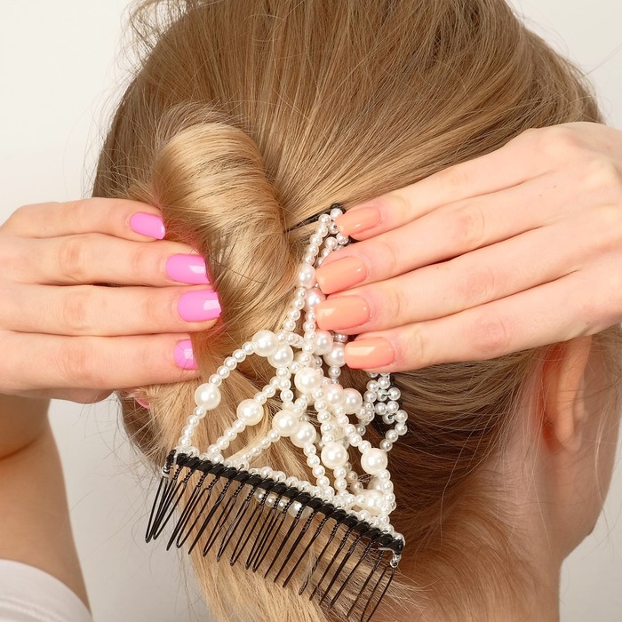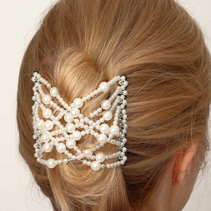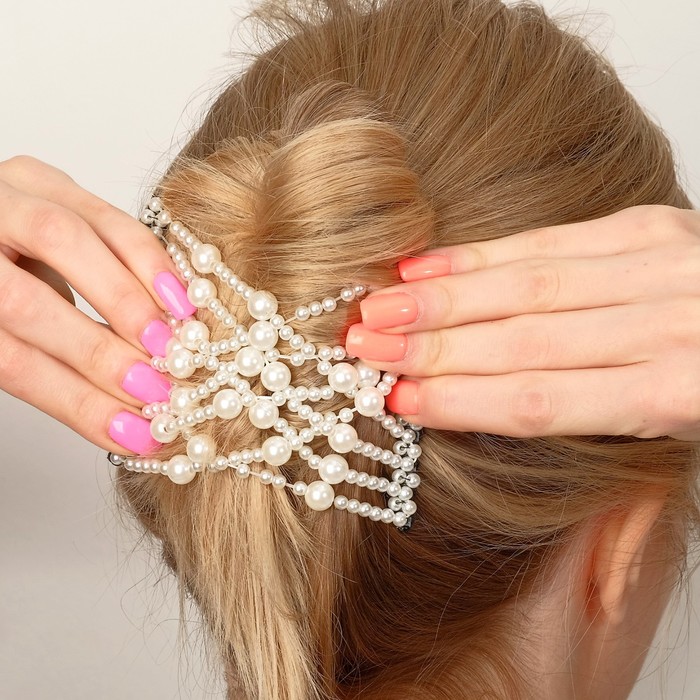Зажим для волос «Жемчужная сетка», крупная бусина, белый — Характеристики