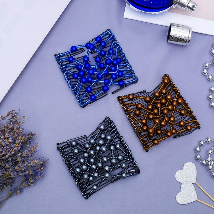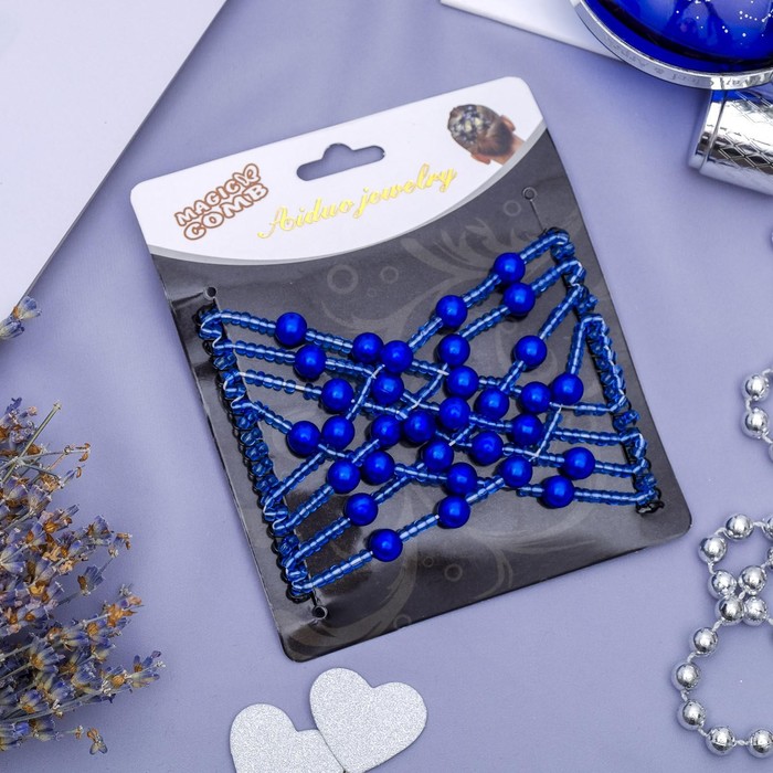 Зажим для волос «Жемчужная сетка», шарики, 9 см, синий — Характеристики