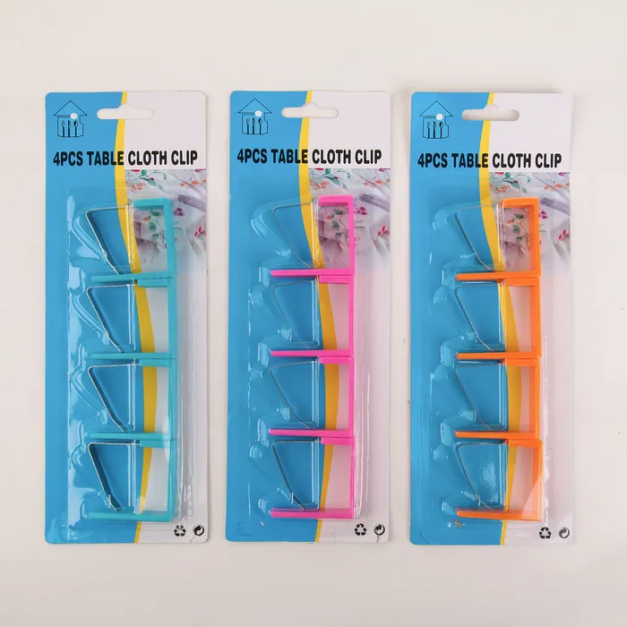 В набор входят четыре зажима с удобным механизмом фиксации, который позволяет прочно закрепить скатерть на любом столе. Зажимы изготовлены из прочного пластика в ярких цветах, что делает их не только функциональными, но и декоративными.