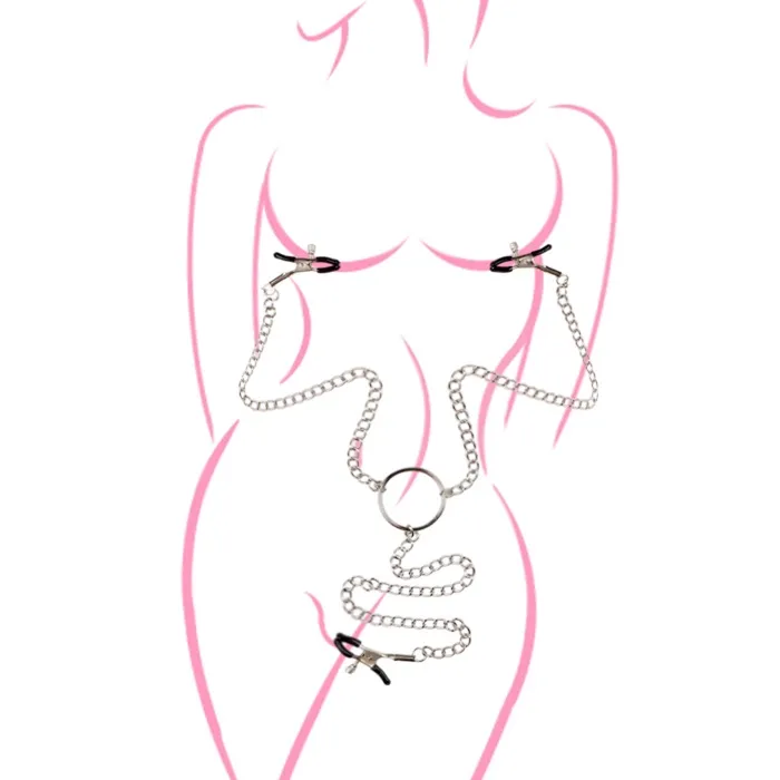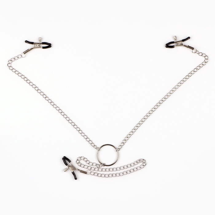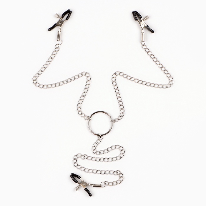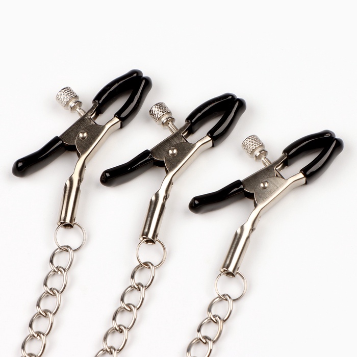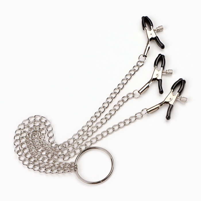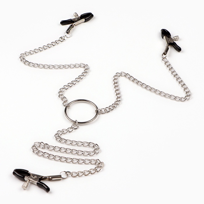 Длинная цепь позволяет одновременно использовать зажимы для сосков и клитора.