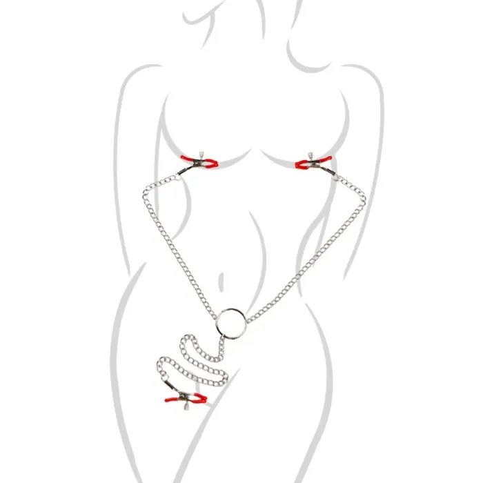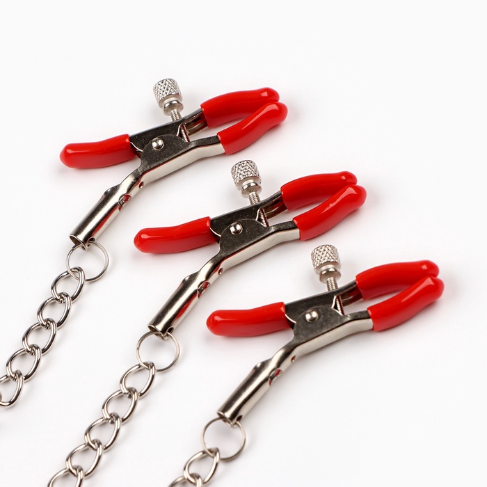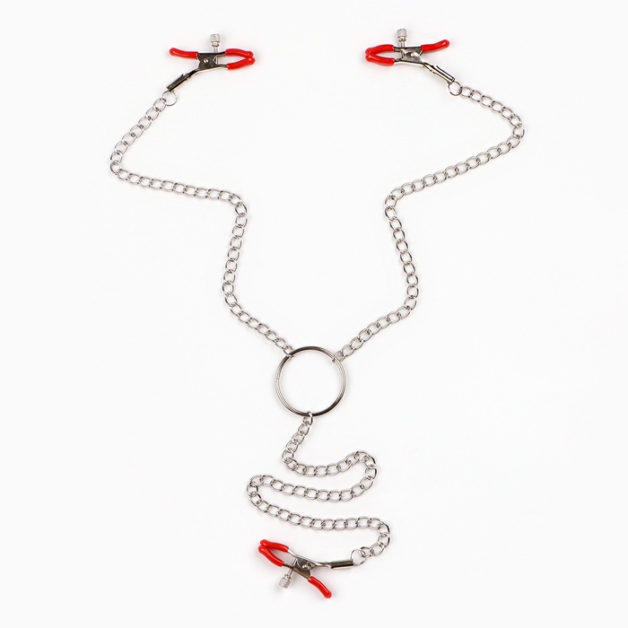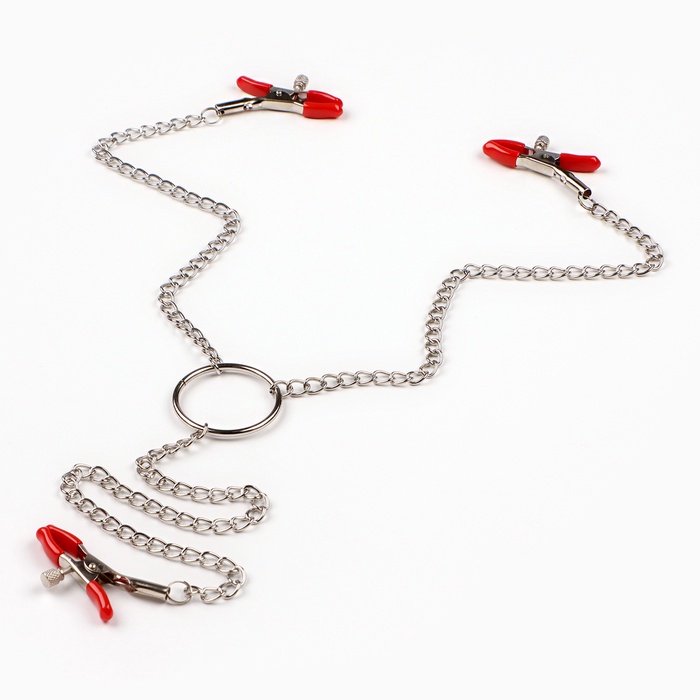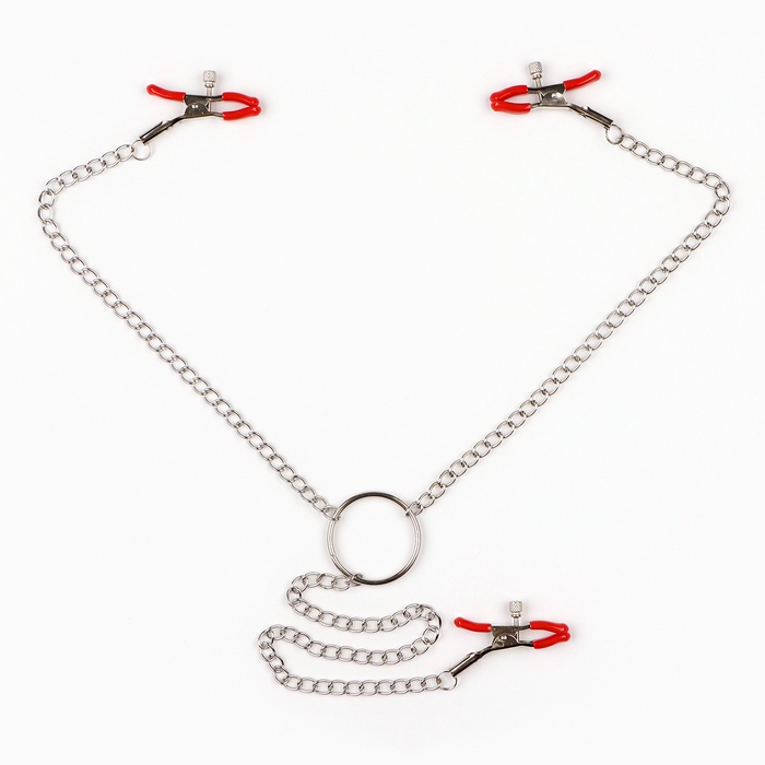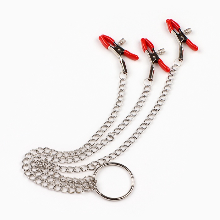 Длинная цепь позволяет одновременно использовать зажимы для сосков и клитора.