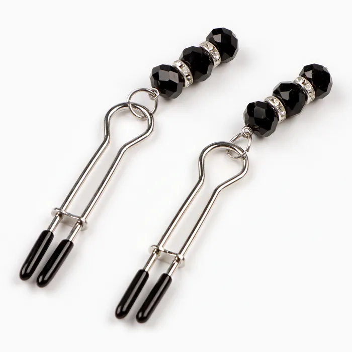 Зажимы для сосков БДСМ аксессуар, с бусинами, металл, пластик, черный — Характеристики
