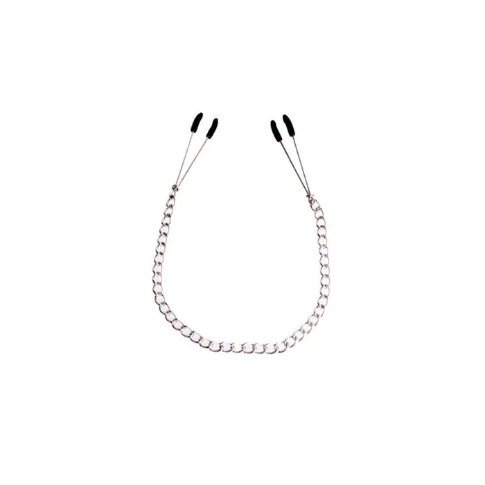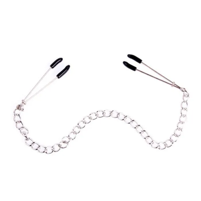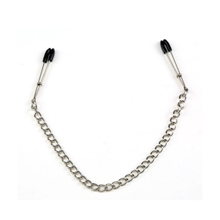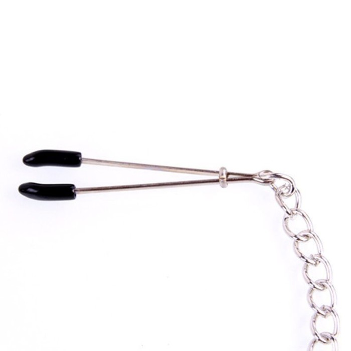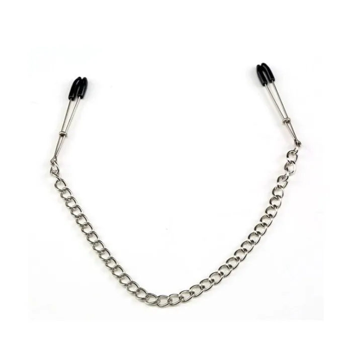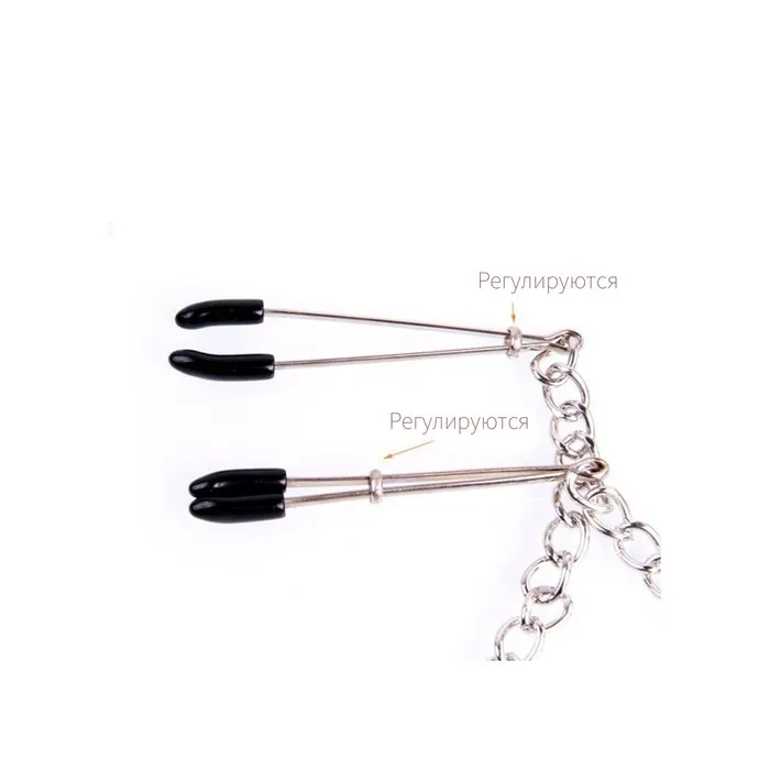 Зажимы для сосков изготовлены из алюминия, изделие имеет пластиковые наконечники. Соединяющая цепочка является не только красивым дополнением, но и позволяет оттягивать и вращать соски для получения дополнительных приятных ощущений.Можно использовать как самостоятельный стимулятор, а также как дополнение к прелюдии и сексу. Обеспечит нежную и безболезненную стимуляцию сосков. Можно регулировать силу нажатия. Отлично подойдёт для начинающих и любителей данного вида стимуляции.
