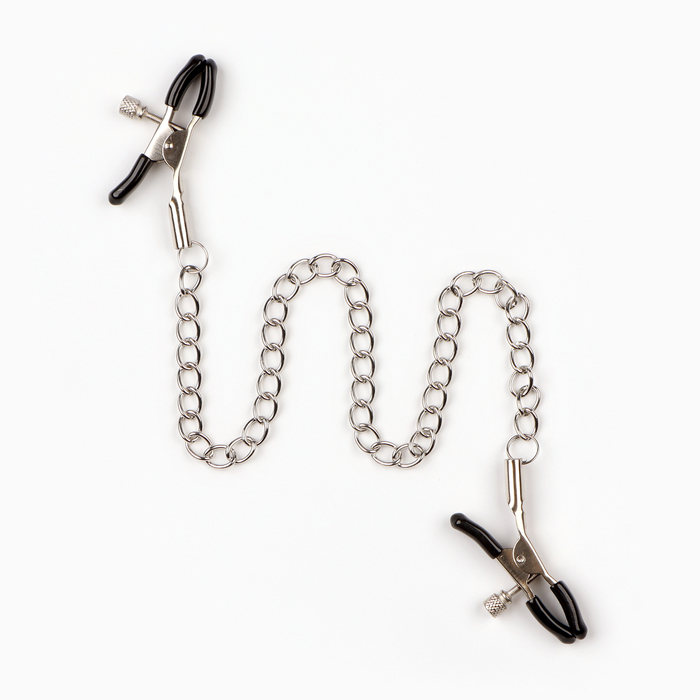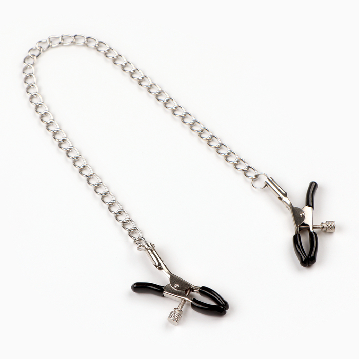 Соединяющая цепочка является не только красивым дополнением, но и позволяет оттягивать и вращать соски для получения дополнительных приятных ощущений.