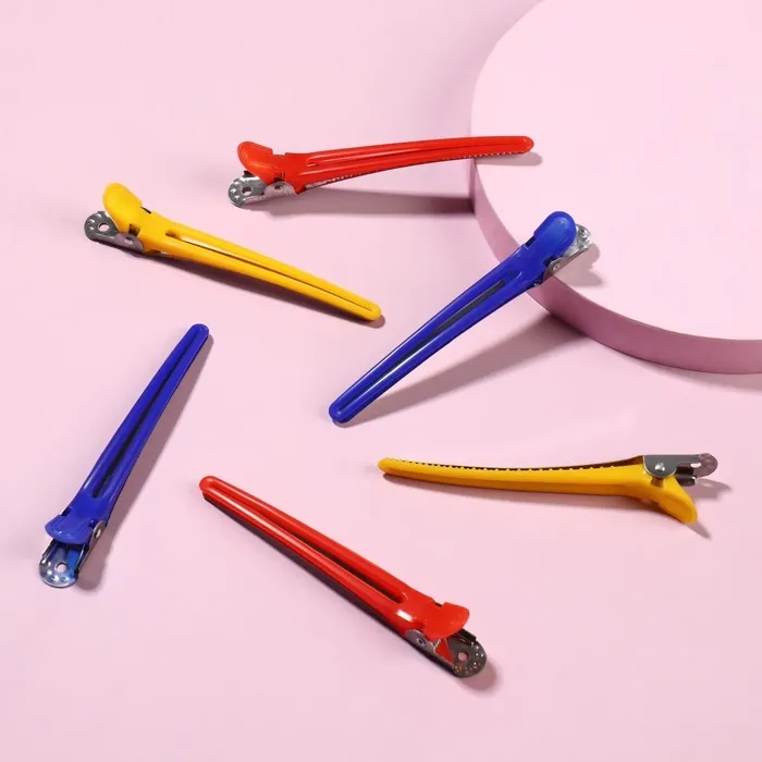 Зажимы для волос – это то, без чего не обойтись ни одному профессионалу при покраске волос, стрижке, создании причесок и укладок. Инструмент отлично разделяет волосы и крепко фиксирует пряди, имеет легкий вес, не травмирует кожу головы и не создает заломы на волосах.