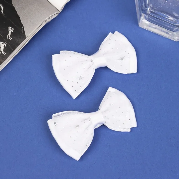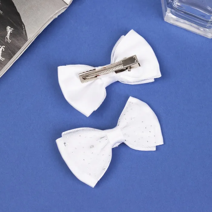 Оригинальность и стиль в каждом движении! Набор заколок «Бантики Вивиан» для волос – это два идеальных аксессуара для юных модниц, стремящихся подчеркнуть свою индивидуальность. Белоснежные банты деликатно блестят, создавая эффект лёгкости и непринуждённости.
