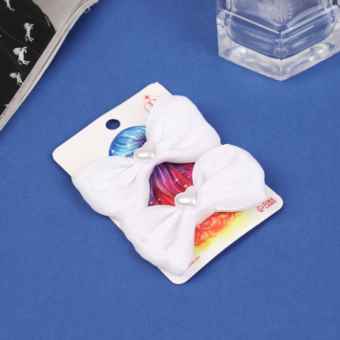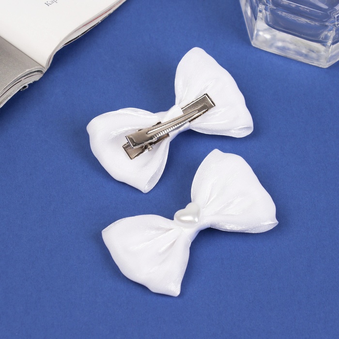 Зажимы для волос «Бантик Вивиан», набор 2 шт., классик сердца, 6 см, белые — Характеристики