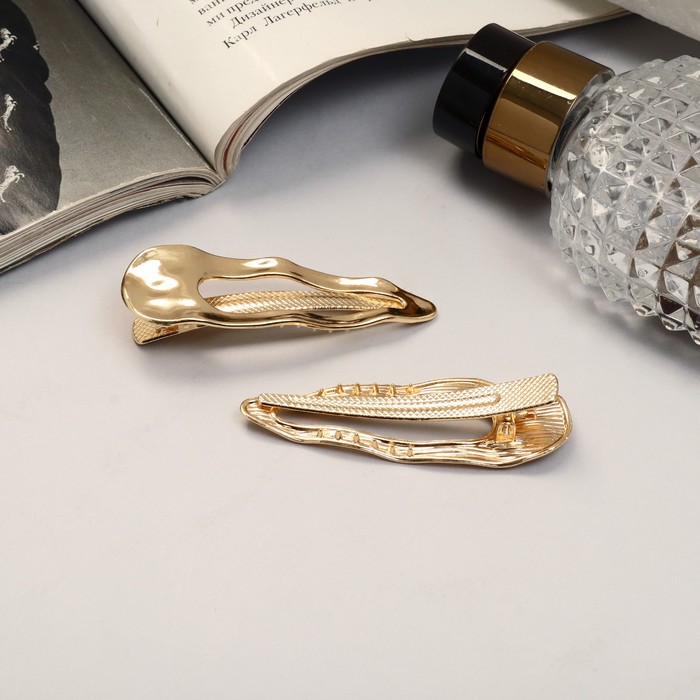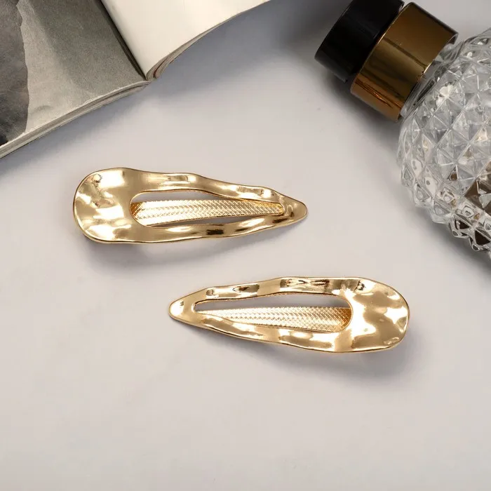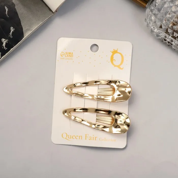 Элегантные металлические зажимы для волос в золотистом оттенке — стильное решение для быстрой укладки. Держат пряди надёжно, но без жёсткого давления. В наборе два аксессуара, чтобы зафиксировать волосы в разных зонах или иметь сменный вариант.