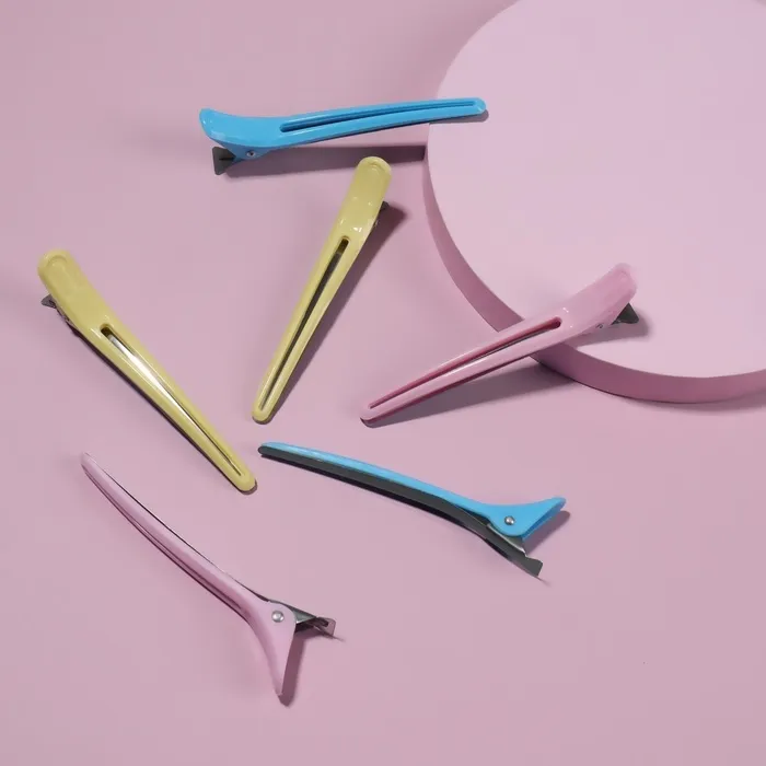 Зажимы для волос – это то, без чего не обойтись ни одному профессионалу при покраске волос, стрижке, создании причесок и укладок. Инструмент отлично разделяет волосы и крепко фиксирует пряди, имеет легкий вес, не травмирует кожу головы и не создает заломы на волосах.