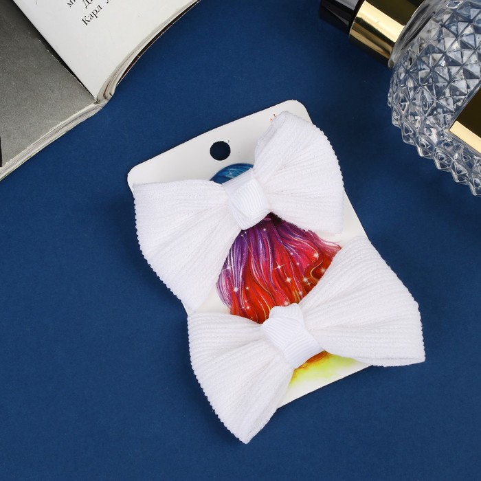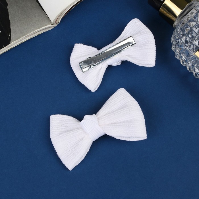 Зажимы для волос «Школьница», набор 2 шт., полосы, 6 см, белые