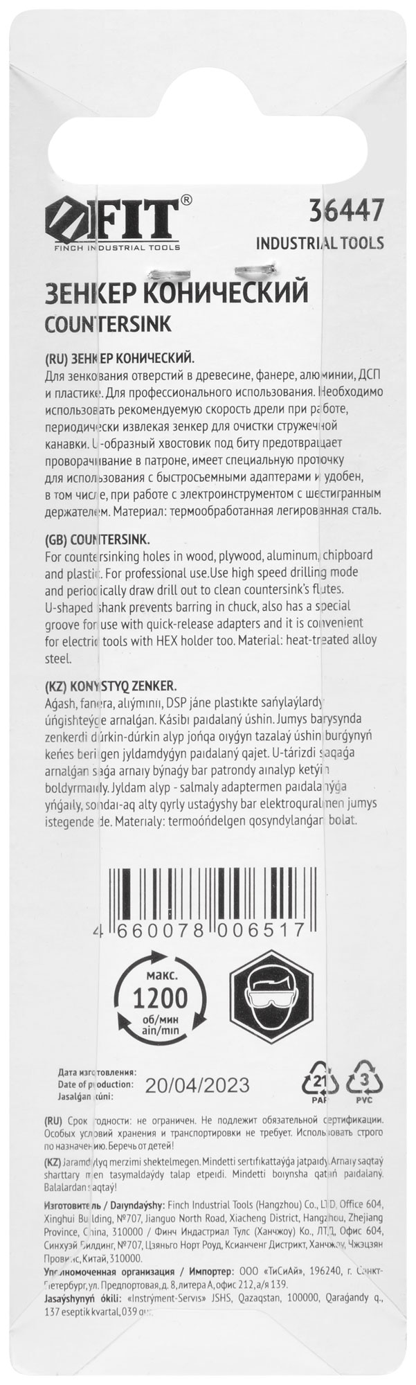 Выберите зенкер FIT 36447, чтобы ускорить и упростить процесс зенкования в вашем проекте.