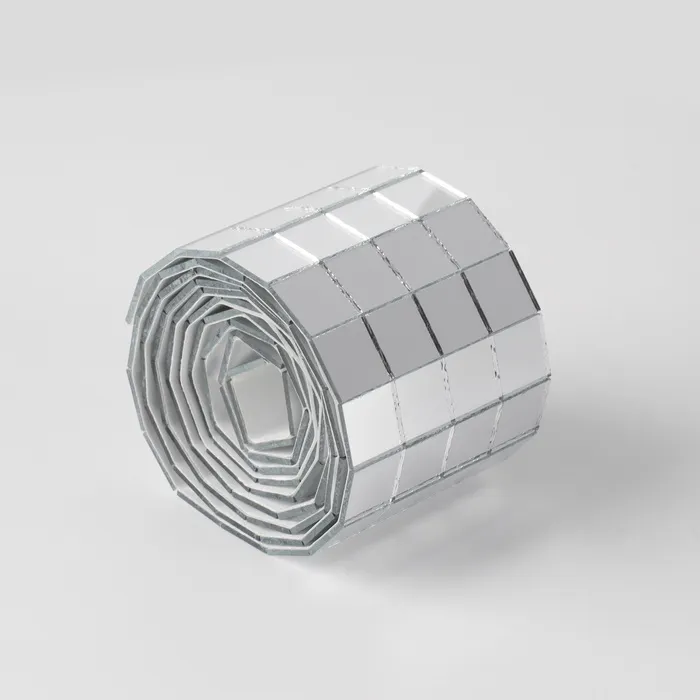 Зеркальная клеевая мозаика — это элемент, состоящий из небольших зеркальных плиток, которые могут использоваться для декорирования различных поверхностей. Она имеет клеевую основу, что облегчает процесс установки: мозайка просто наклеивается на поверхность без необходимости в дополнительных клеящих материалах.