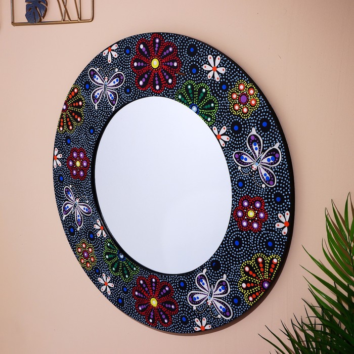 Зеркало, 60 см, дерево, синее с цветами — Характеристики