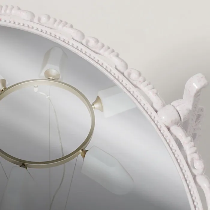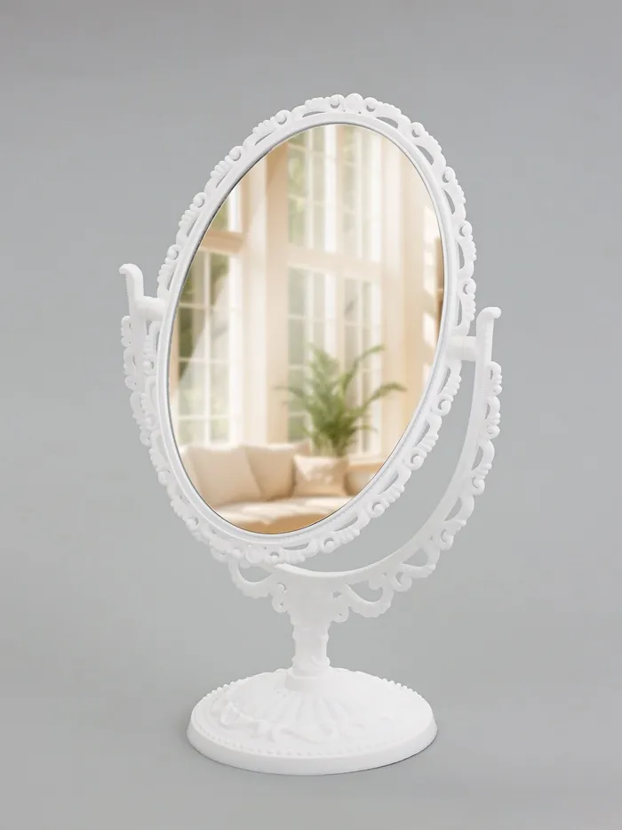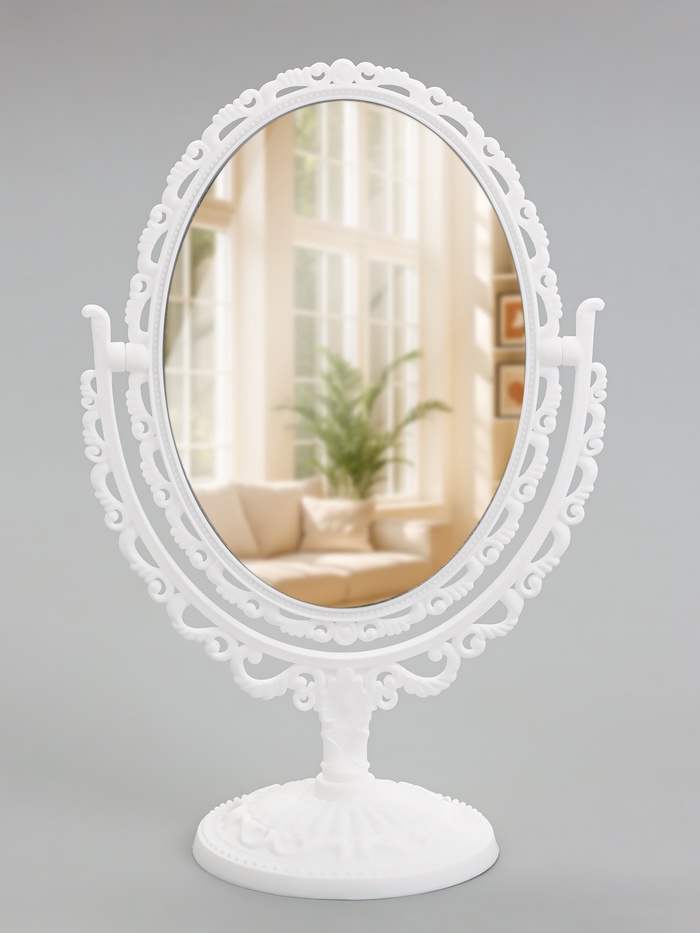 Овальное двустороннее настольное зеркало с белой рамой и увеличением x2 станет практичным решением для ежедневного ухода и макияжа. Зеркальная поверхность размером 11×15,5 см обеспечивает чёткое отражение, а увеличительная сторона помогает рассмотреть мелкие детали. Поворотный механизм позволяет легко менять угол наклона, обеспечивая комфорт при использовании на столе в спальне или гостиной.