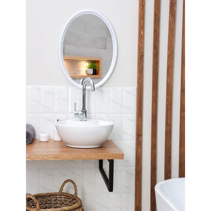 Мы предлагаем вам большие и удобные зеркала в интересных пластиковых рамах. Вы можете повесить его в коридоре, в ванной комнате или на кухне – нежная расцветка впишется в любой интерьер и только украсит его. В комплекте идет набор дюбелей и шурупов, которые помогут вам подобрать для вашего отражения самое удобное и комфортное место.