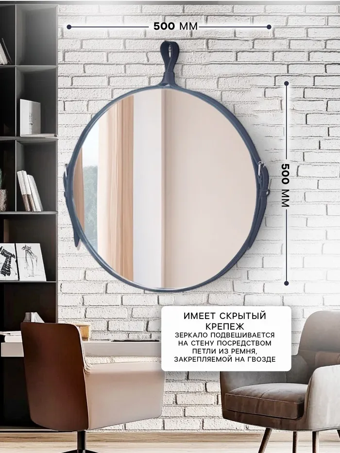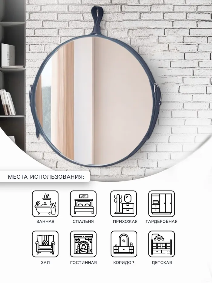 Зеркало интерьерное настенное «Ритц», на ремне из натуральной кожи, d=50 см, цвет чёрный — Характеристики