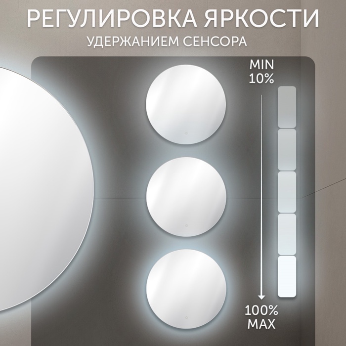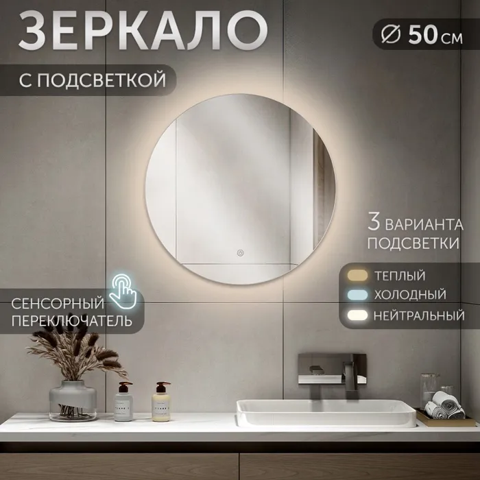 Зеркало интерьерное настенное «Рубин», c окантовкой, с LED – подсветкой, сенсорное, d=50 см 109 — Характеристики