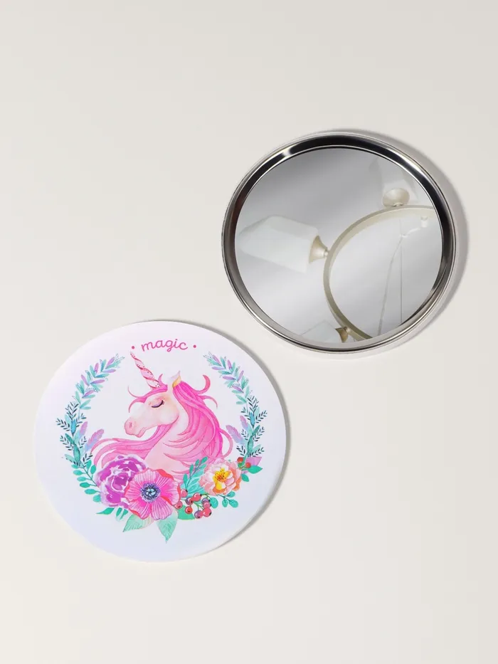 Зеркало карманное «Единороги», d = 7,5 см, разноцветное