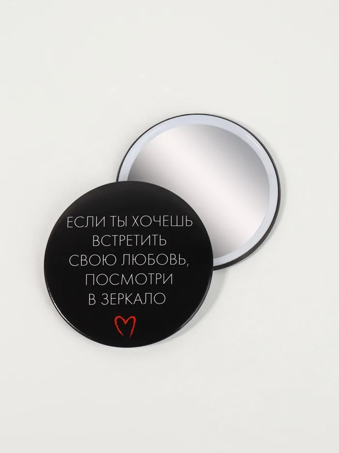 Зеркало карманное «Любовь», d=7 см, чёрное — Характеристики