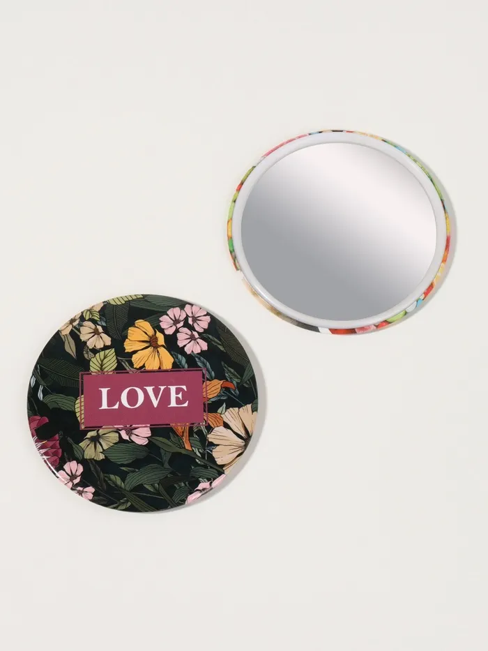 Зеркало карманное LOVE, d=7 см, тёмно-зелёное