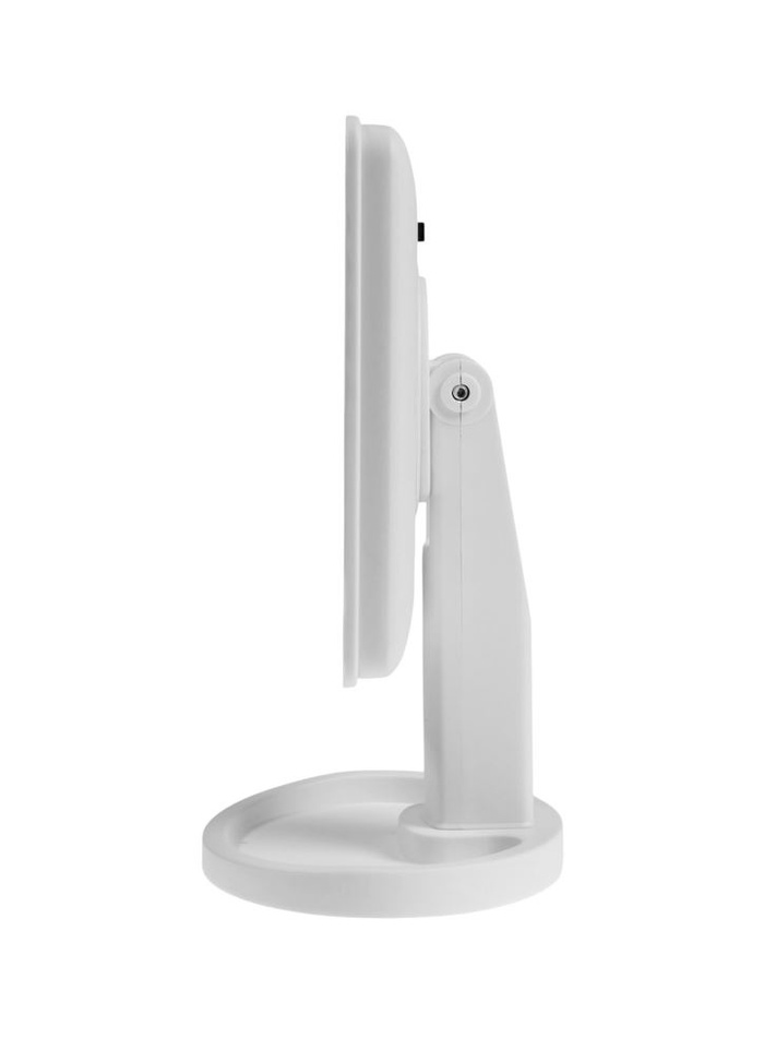 Настольное зеркало формата 26,5 × 16 см с LED-подсветкой и сенсорной кнопкой станет стильным и функциональным дополнением к вашему утреннему или вечернему уходу. Белый корпус идеально впишется в светлый интерьер, а равномерное освещение от встроенных светодиодов делает макияж и прическу более аккуратными и комфортными.