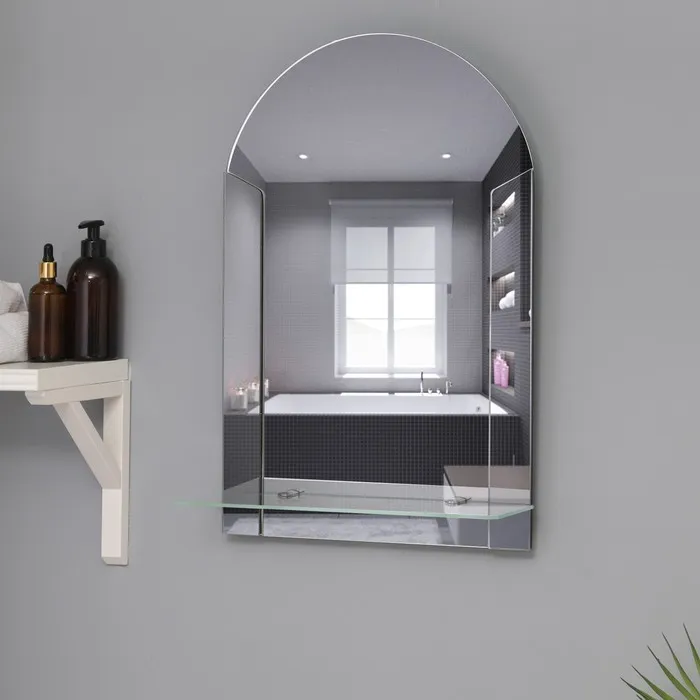 Зеркало с полкой не только выполняет свою главную функцию, но и имеет удобную полку для хранения различных предметов.