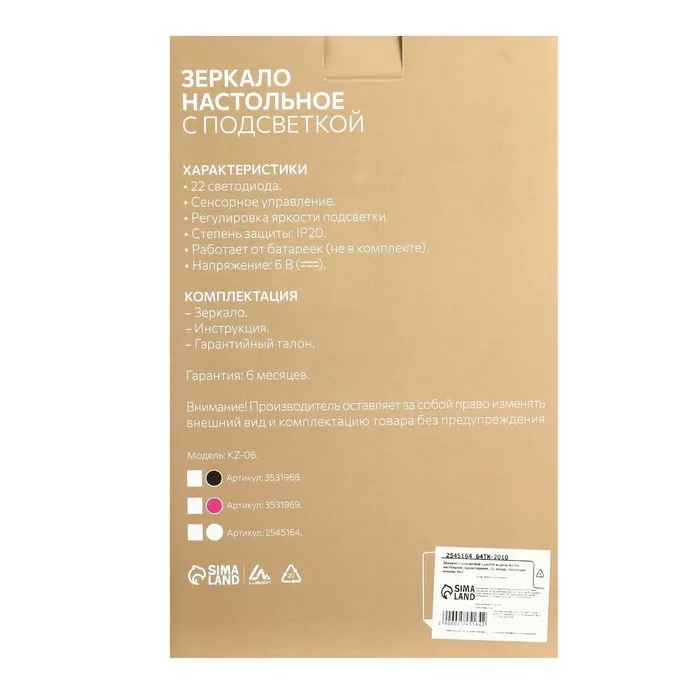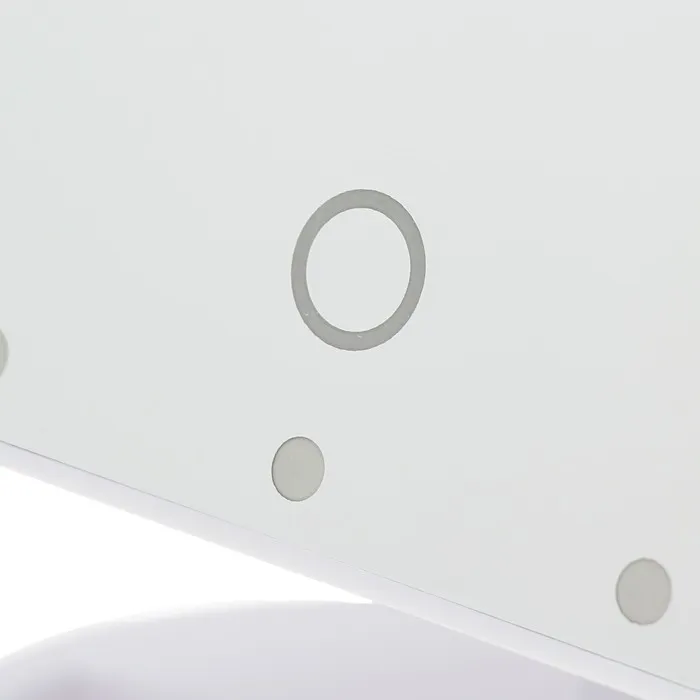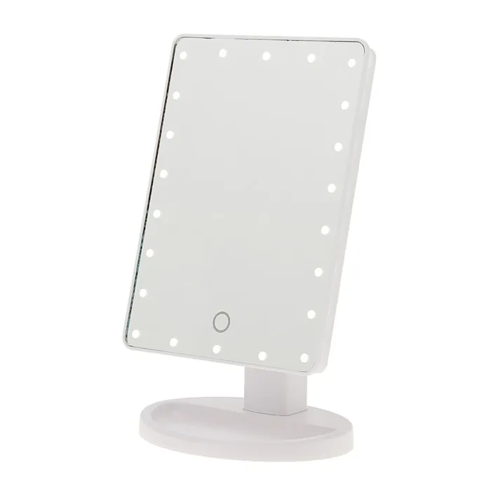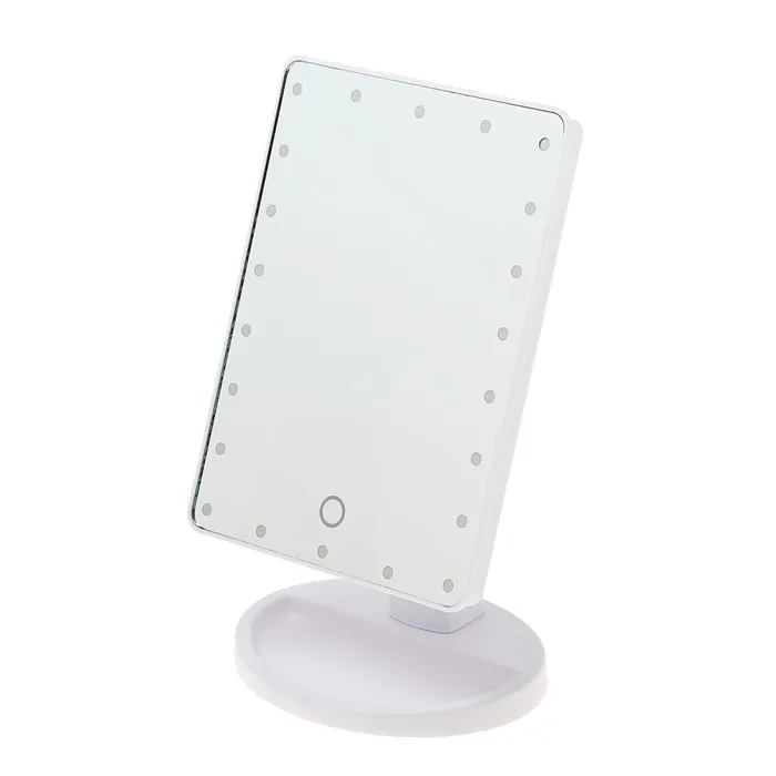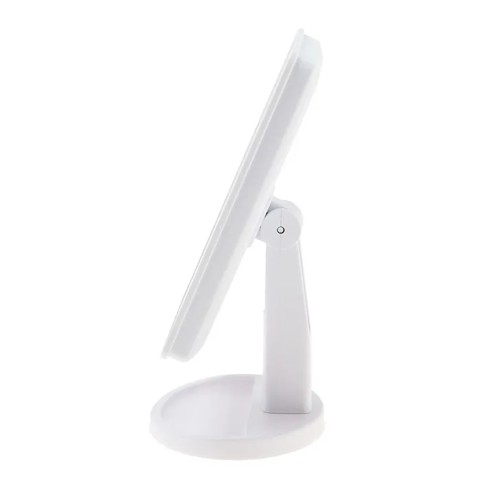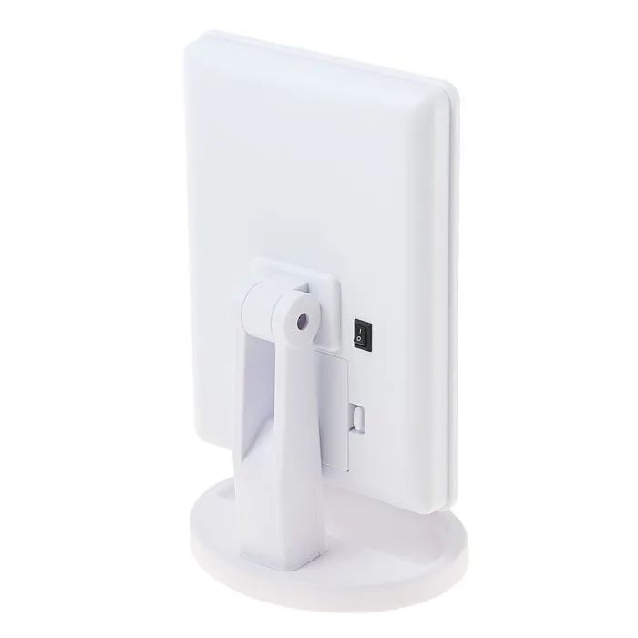 Настольное зеркало со светодиодной подсветкой станет незаменимой вещью в вашей спальне. Оптимальный размер зеркала позволяет с удобством наносить макияж, делать прически и образы на каждый день. Подсветка 22 диодов по всему периметру зеркала гарантирует равномерное освещение, яркость которого можно регулировтаь одной сенсорной кнопкой на зеркальной поверхности. Чтобы включить подсветку, переведите переключатель на задней части устройства в положение "|".