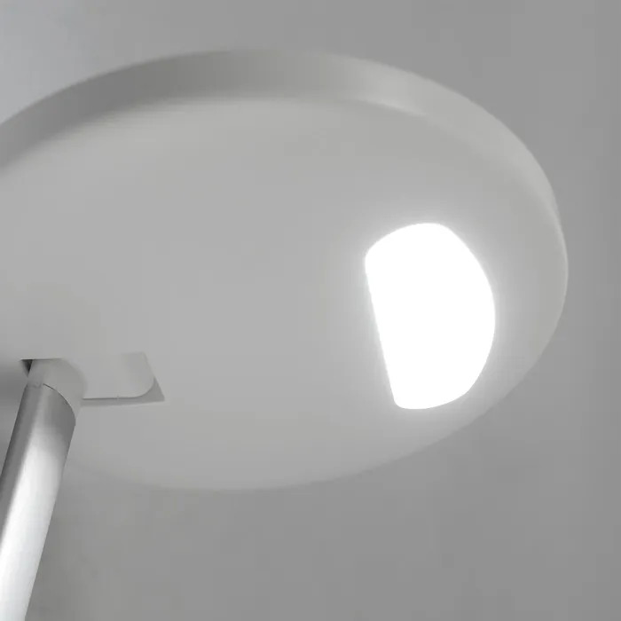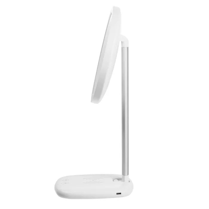 С другой стороны устройства установлена лампа. Переверните зеркало и с помощью сенсорной кнопки на основании включите настольную лампу. Вы можете выбрать один из трёх режимов свечения: холодный, тёплый и дневной свет. Интенсивность свечения также регулируется сенсорными кнопками на основании прибора.