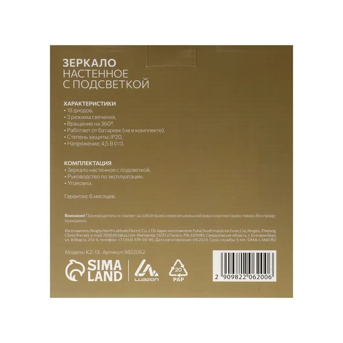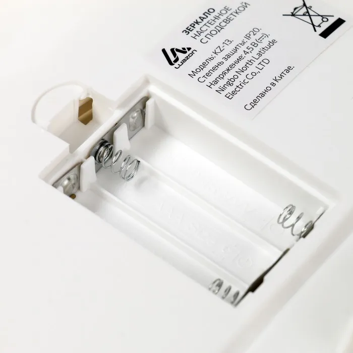 Зеркало работает от 3 батареек ААА (не в комплекте).
