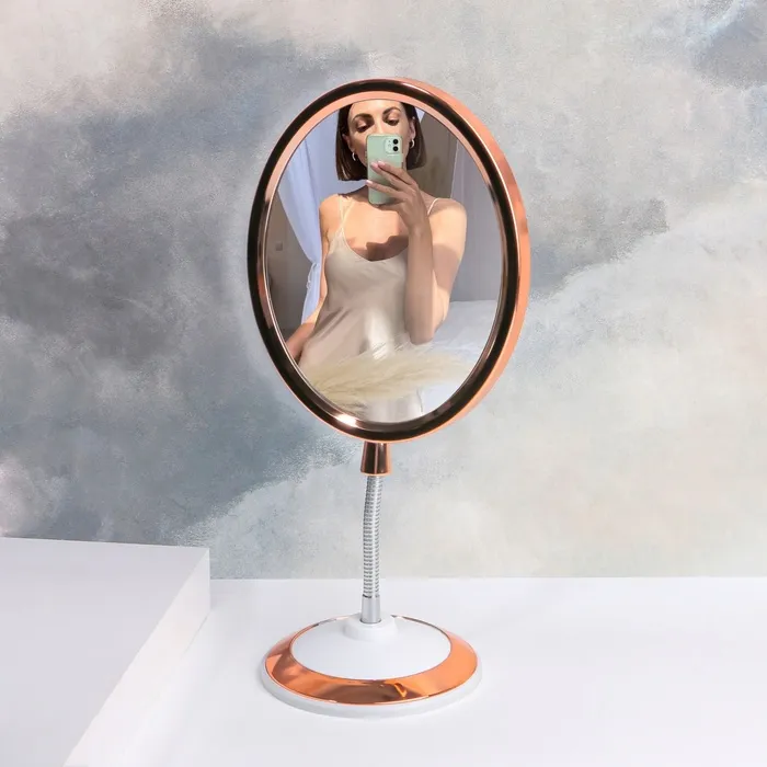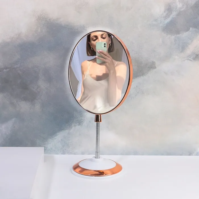 Зеркало на гибкой ножке «Овал», двустороннее, с увеличением х2, зеркальная поверхность 14×17 см, цвет медный